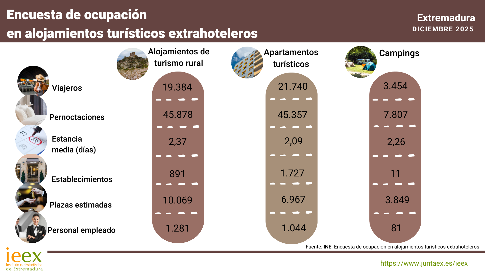 Se ha publicado la nota divulgativa, infografía, indicadores y gráfico interactivo de la Encuesta de ocupación en alojamientos turísticos extrahoteleros. Diciembre 2025